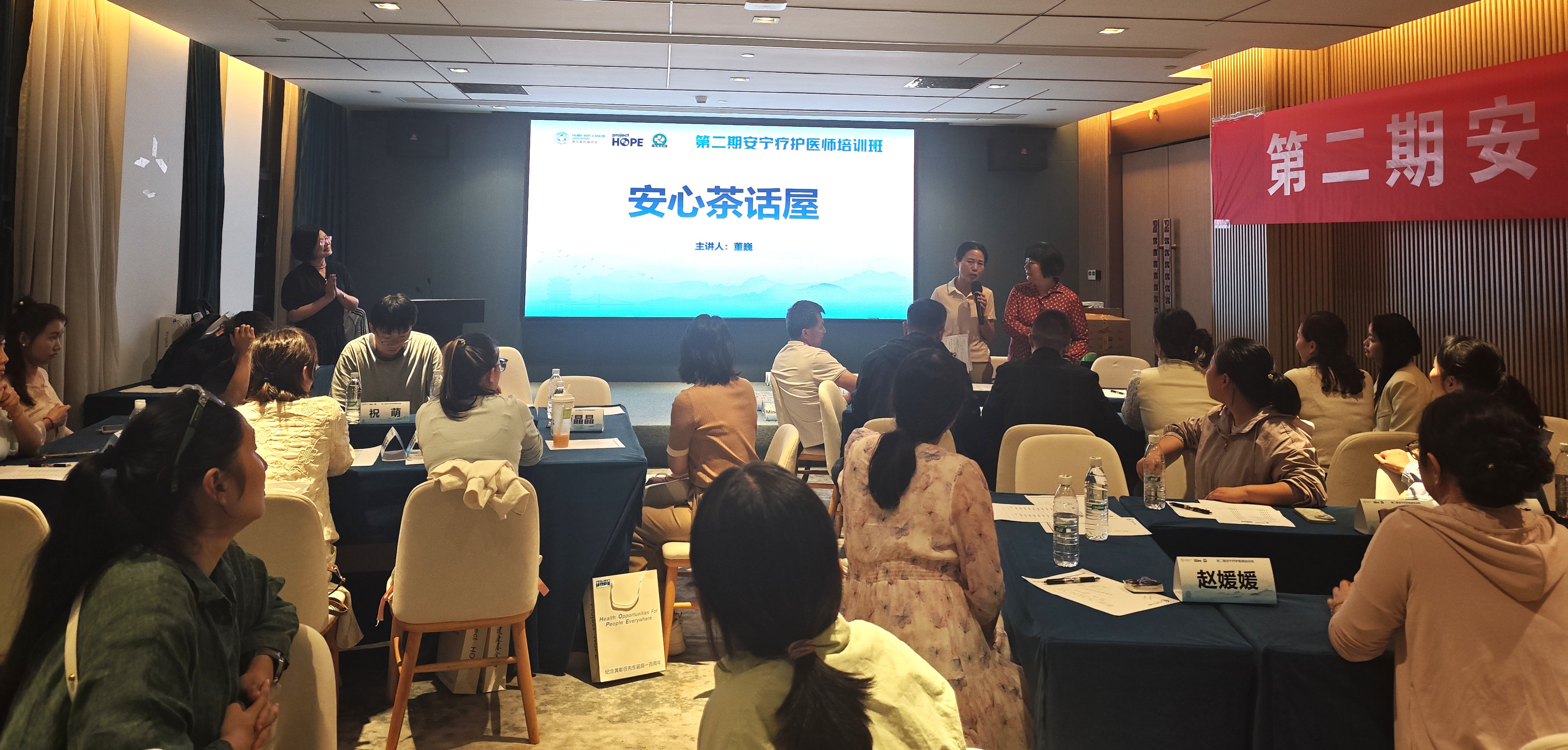 9月19日晚间,培训班在HOPE NIGHT活动中拉开序幕,通过轻松互动拉近学员之间的距离;“安心茶话屋”环节,学员围绕“生命意义”深度探讨,分享生活和工作中的生离死别案例,坦诚交流对死亡的认知。