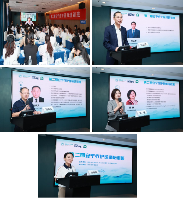 9月20日上午开班议式由湖北省抗癌协会秘书长王惠芬主持,湖北省抗癌协会理事长魏少忠、湖北省肿瘤医院书记郑正春、武汉市洪山卫健局医政医管科科长刘争文、世界健康基金会武汉办公室主任董巍分别发表致辞,共同强调本次培训“聚焦基层安宁疗护、强化技能落地转化”的核心,帮助基层医疗机构搭建可复制的安宁疗护服务框架,切实提升终末期患者全人照护质量。