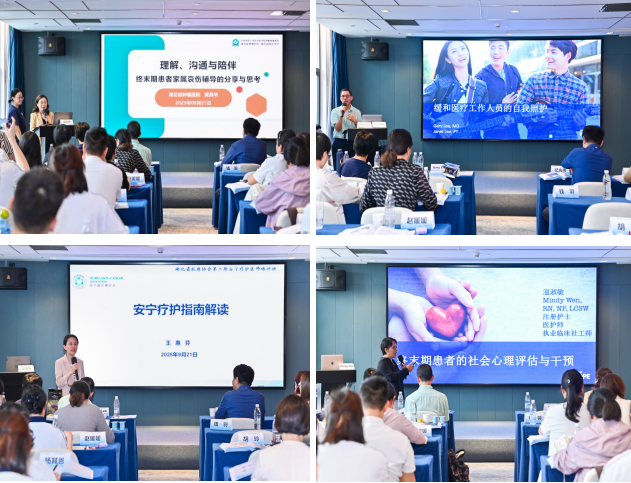 9月21日(培训第三天)以“临床精研+人文延伸+总结结业”为核心。上午场由徐爱京教授主持。来自湖北省肿瘤医院的张莉、冉凤鸣两位专家结合病例详细讲解终末期患者常见的疼痛、消化系统症状和谵妄等问题;美国加州硅谷医疗中心的Marilyn Reiss-Carradero专题讲授濒死期照护要点,填补基层医师在终末阶段照护的知识空白;湖北省肿瘤医院钱羽博士介绍“家庭会议在安宁疗护中的应用”,创新医-护-患-社的协作模式;胡志萍、王文果两位专家介绍了中医适宜技术在安宁疗护中的临床实践。