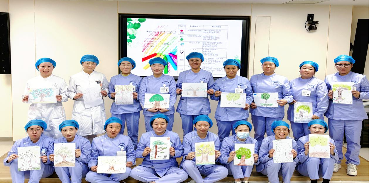 在舒缓轻柔的音乐中,“绘生命之树,叙生命故事”主题工作坊温情开启。本次活动由田胜男护士长引导,参与培训的专科护士及院内护理同仁共同执笔,绘制属于自己心中的“生命之树”。每一笔色彩、每一段故事,都是对生命的礼赞与回顾。在自愿分享环节,多位老师动情讲述自己的职业感悟与生命经历,引发深深共鸣。工作坊最终形成的“生命森林”主题作品墙,生动展现了生命之间的深刻联结,体现了护理团队的人文关怀精神和专业素养。