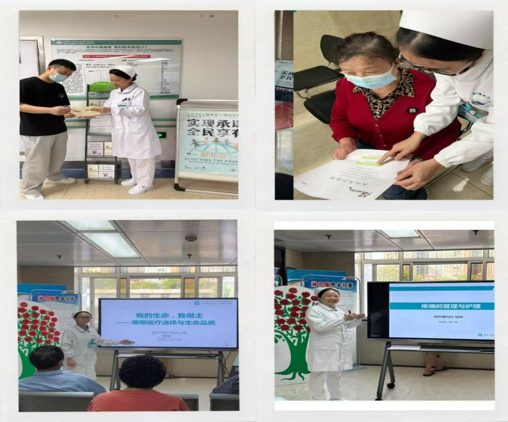 每年的十月第二个星期六是“世界安宁缓和医疗日”,今年主题为“实现承诺,全民享有”。为积极响应这一全球性倡议,推动安宁疗护理念的普及,让生命在每一个阶段都享有尊严与安宁,湖北省肿瘤医院举办了一系列形式多样、内容丰富的安宁缓和医疗日主题活动。活动深入病房、走进门诊、辐射社区,旨在将传递安宁疗护理念、提升民众对安宁疗护的认知。