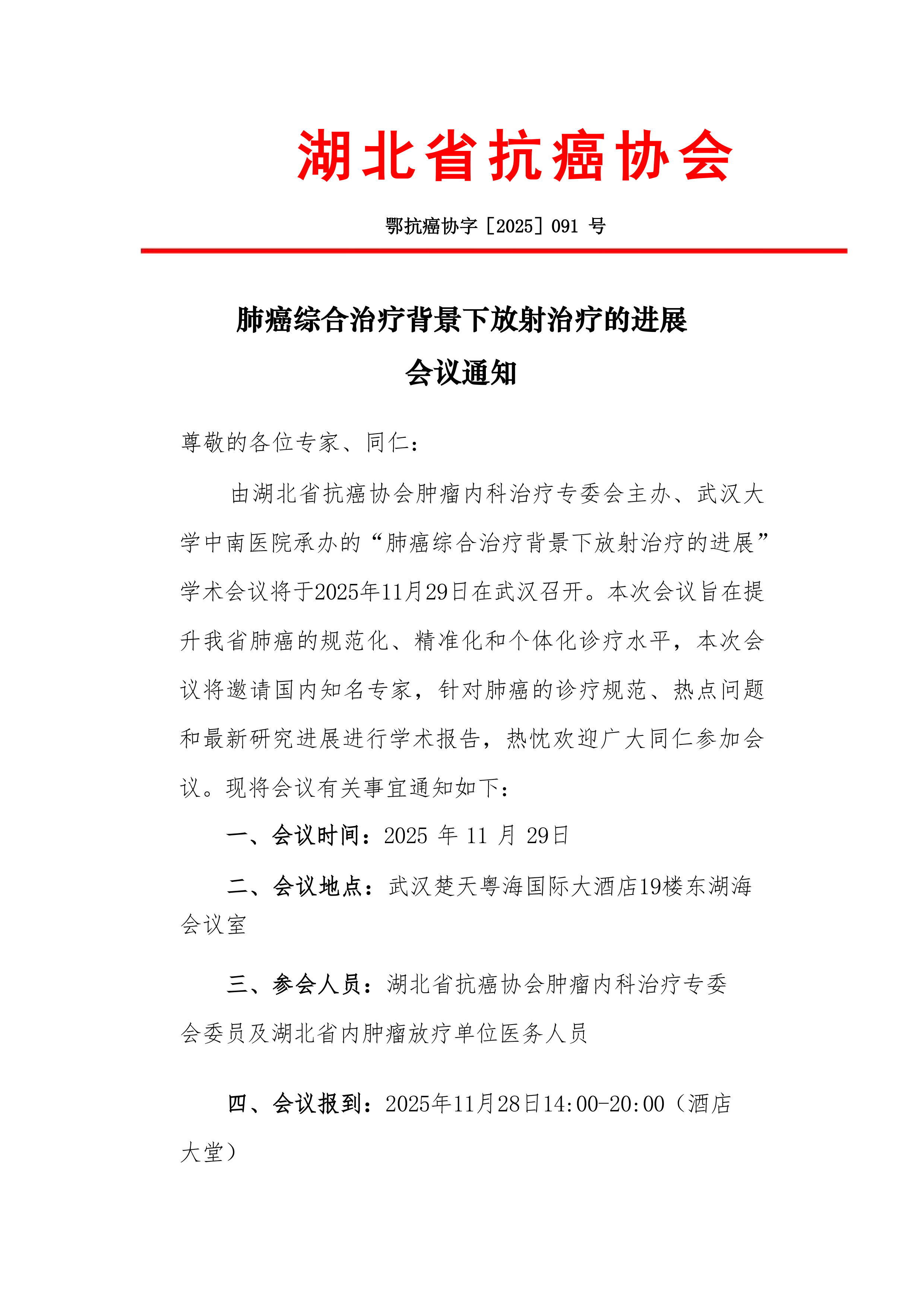 肺癌综合治疗背景下放射治疗的进展会议通知