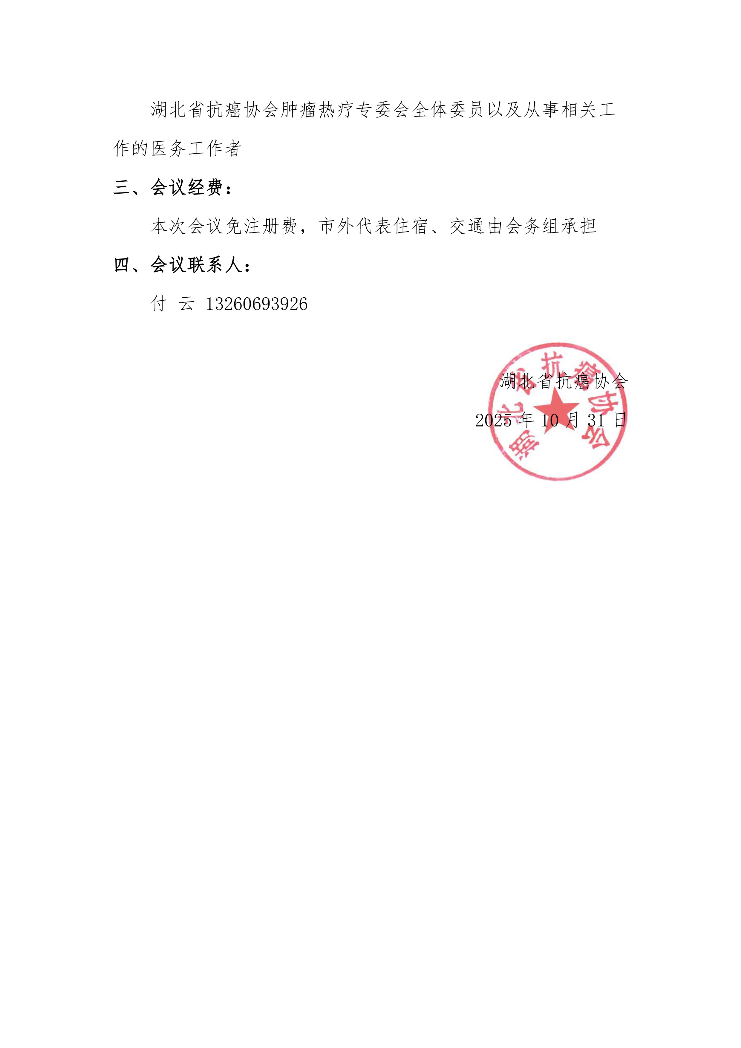 湖北省抗癌协会肿瘤热疗专业委员会2025年度学术会议通知
