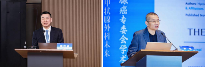 专题授课环节权威专家带来了一场精彩纷呈的学术盛宴。湖北省抗癌协会甲状腺癌专委会副主任委员、华中科技大学同济医学院附属协和医院黄韬教授讲授了《慎重对待甲状腺癌诊疗降级》;湖北省肿瘤医院陈健教授分享了《局部晚期甲状腺癌新辅助治疗实践与探索》;西安交通大学第二附属医院曹罡教授分享了《经腋窝三孔法腔镜甲状腺手术》;湖北省抗癌协会甲状腺癌专委会主任委员、湖北省肿瘤医院朱又华教授讲授了《局部晚期甲状腺癌的治疗》;华中科技大学同济医学院附属同济医院杨志芳教授分享了《经口入路腔镜甲状腺切除手术体会分享》;湖北省抗癌协会甲状腺癌专委会常委、华中科技大学同济医学院附属协和医院明洁教授分享了《分化型甲状腺癌手术范围的临床抉择》;湖北省抗癌协会甲状腺癌专委会委员,湖北省肿瘤医院梅志丹教授分享了《甲状腺未分化癌诊疗策略及进展》;湖北省抗癌协会甲状腺癌专委会委员,武汉市第一医院阮剑教授分享了《经口经颏入路腔镜甲状腺手术疑难病例分享》 ;湖北省抗癌协会甲状腺癌专委会委员,华中科技大学同济医学院附属同济医院沈文状教授分享了《基于甲状旁腺保护的改良En-bloc甲状腺癌根治术》。