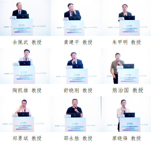 会议特邀陆军军医大学西南医院余佩武教授,华中科技大学同济医学院附属同济医院龚建平教授,中国医科大学附属第一医院朱甲明教授,华中科技大学同济医学院附属协和医院、湖北省抗癌协会胃癌专业委员会副主任委员陶凯雄教授,华中科技大学同济医学院附属协和医院舒晓刚教授,湖北省肿瘤医院、湖北省抗癌协会胃癌专业委员会副主任委员熊治国教授,武汉大学人民医院郑勇斌教授,襄阳市中心医院、湖北省抗癌协会胃癌专业委员会常务委员廖晓锋教授,武汉市第一医院、湖北省抗癌协会胃癌专业委员会常务委员邵永胜教授等多位省内外胃结直肠肿瘤领域的多位学科带头人、专家分别就机器人胃癌手术面临的机遇与挑战、膜解剖专题、机器人经肛微创手术的现状与进展、食管胃结合部癌手术中食道高位离断的安全性与可行性研究、远端胃癌新辅助化免联合根治术后毕一式消化道重建的应用与争议、靶免时代:胃癌外科诊疗的临床与思考、消化道肿瘤TIL治疗展望等多个议题进行了精彩的学术汇报,并与参会同仁们进行深入交流,旨在进一步推广胃结直肠肿瘤规范化诊疗技术、理念,赢得了参会同道们的一致称赞。