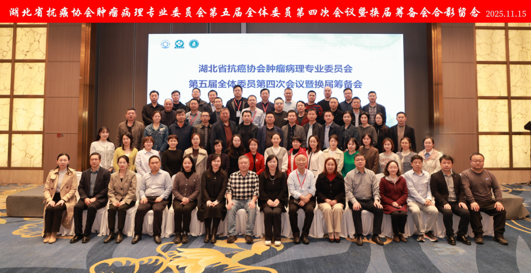会议期间,湖北省抗癌协会肿瘤病理专业委员会第五届全体委员第四次会议暨换届筹备会同步召开。会议严格按议程进行参会考勤通报、总结第五届专委会工作、听取换届说明等工作,经民主协商确定第六届委员会委员单位推荐名单,为专委会长远发展奠定基础,会后全体委员合影留念。