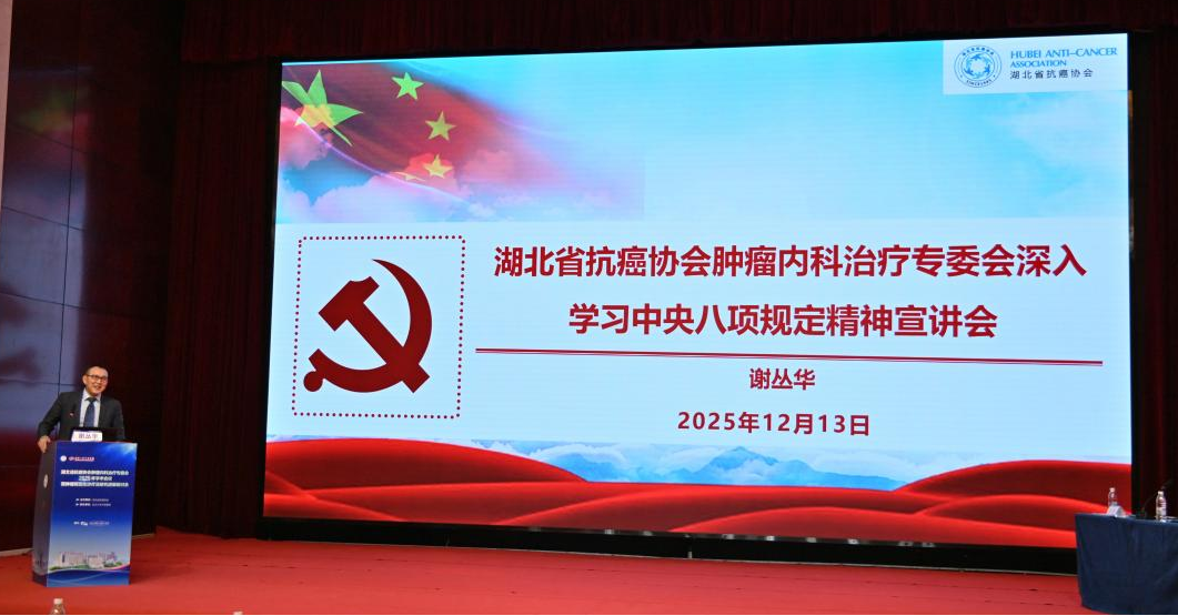 会议期间,湖北省抗癌协会肿瘤内科治疗专业委员会召开了年度工作会议。主任委员谢丛华教授汇报了2025年度学会在学术交流、科普宣传及基层培训等方面的工作成果,并对下一年度重点任务进行了部署,并主持开展了“深入学习中央八项规定精神”专题宣讲,强调专委会应持续加强作风建设,营造务实、规范、清廉的学术氛围。