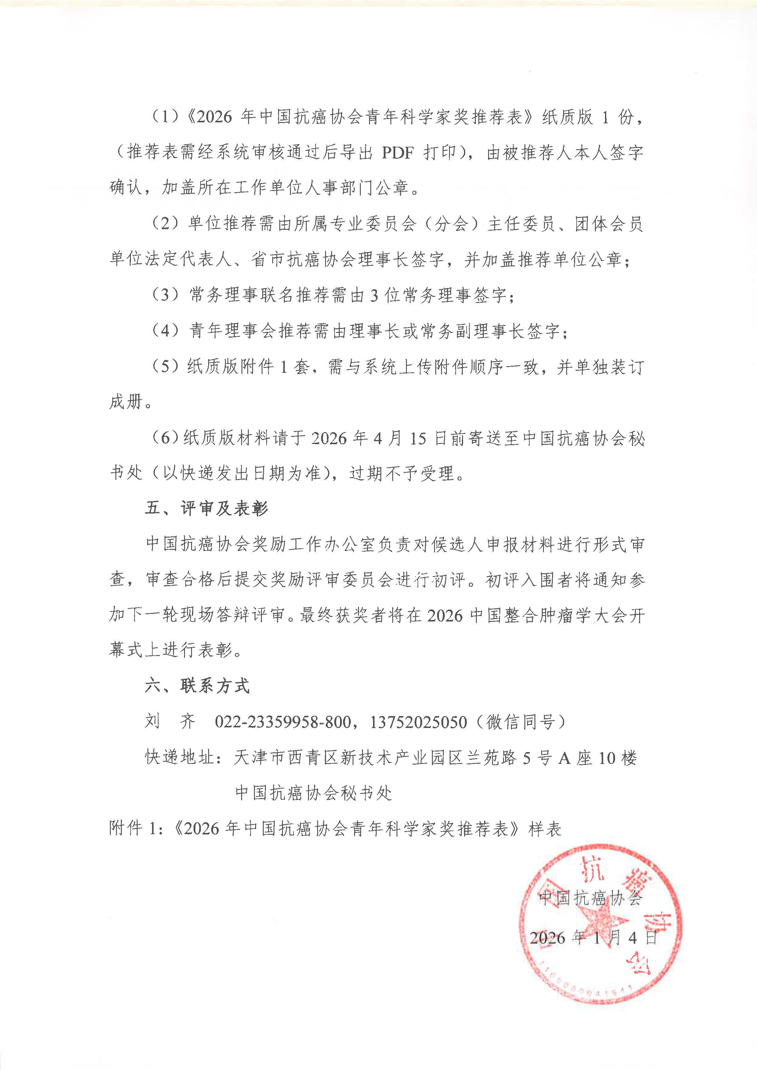 附件1:《2026年中国抗癌协会青年科学家奖推荐表》样表