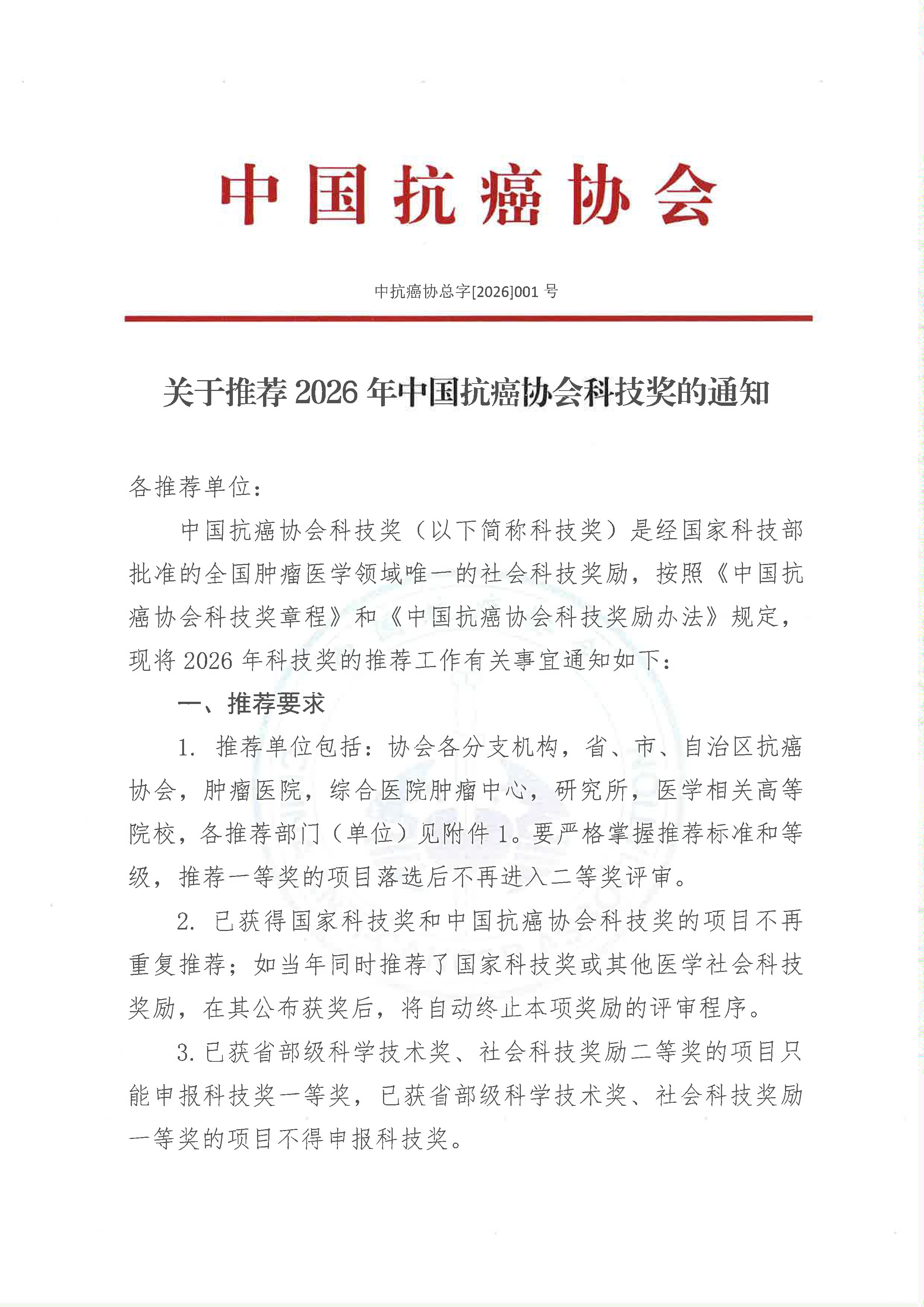 1. 2026年中国抗癌协会科技奖推荐单位名单