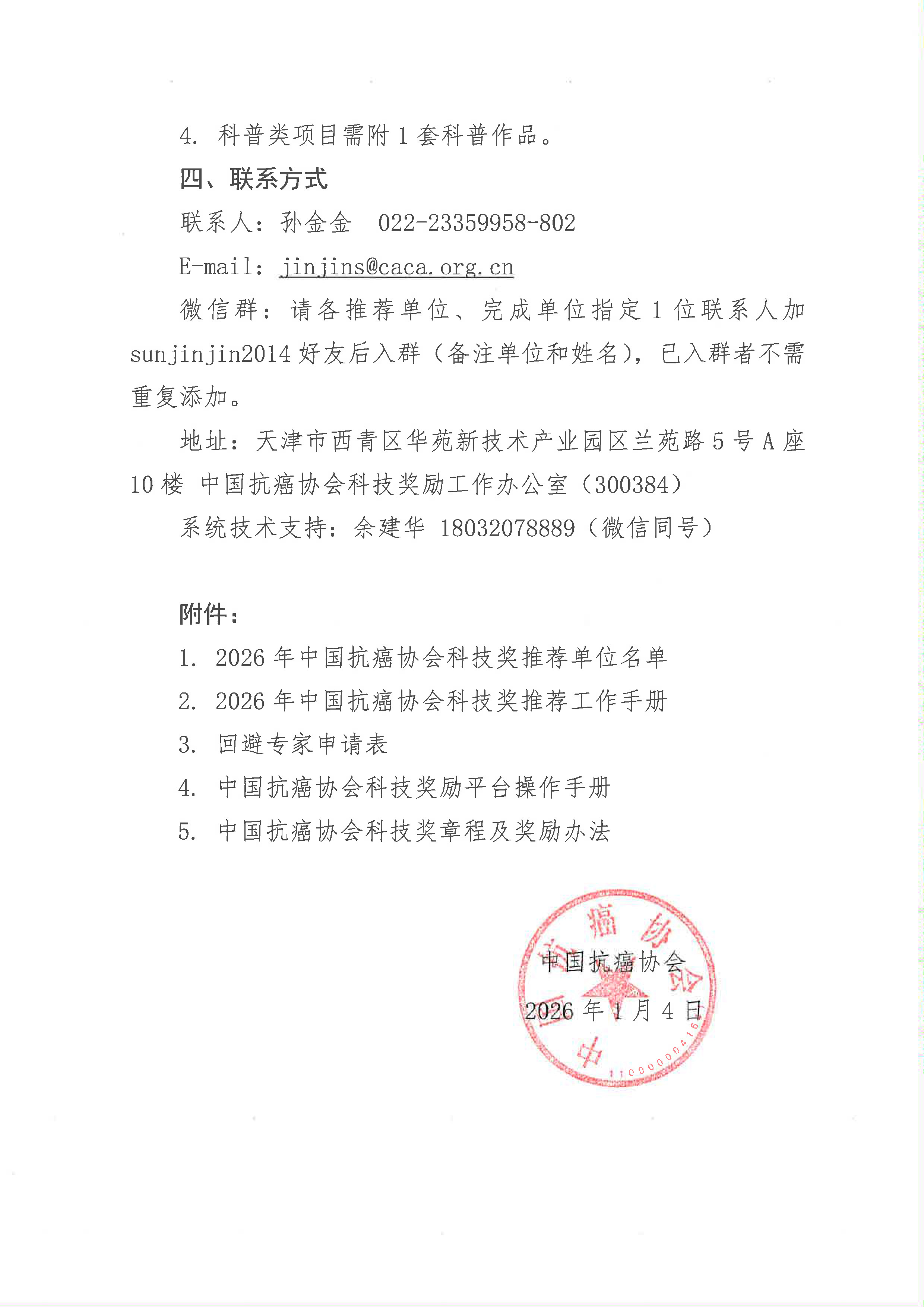 2. 2026年中国抗癌协会科技奖推荐工作手册