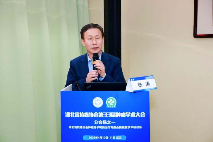 专委会前任主任委员、华中科技大学同济医学院附属协和医院张涛教授致开幕辞。他对与会专家同仁表示热烈欢迎,全面回顾专委会近年来在学术交流、技术推广、规范诊疗等方面的丰硕成果,强调分子靶向治疗在精准肿瘤诊疗中的核心地位,并对新一届委员会寄予厚望。