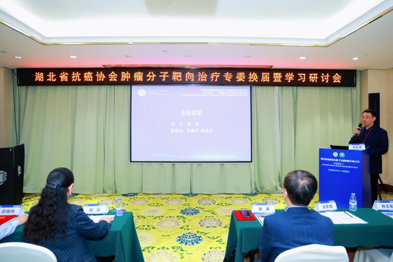 换届选举环节由湖北省抗癌协会组织部长吴东德教授主持,湖北省医评办社团组织部主任陆泓宣读省卫健委换届批复。经民主选举,武汉大学人民医院徐细明教授当选为湖北省抗癌协会肿瘤分子靶向治疗专委会第四届主任委员,张涛教授受聘为专委会顾问。