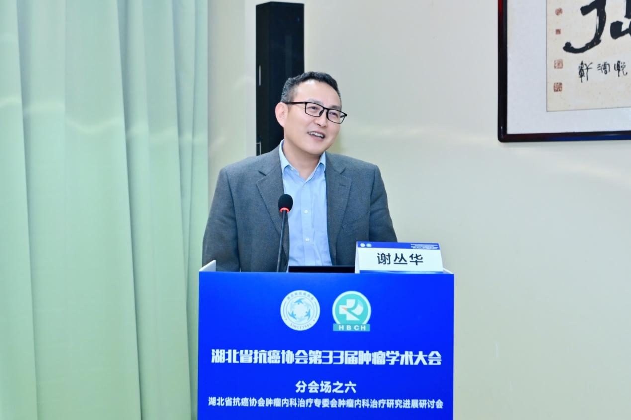 会议开幕式由专委会秘书、武汉大学中南医院戴静教授主持。分会场主席、协会副理事长、武汉大学中南医院肿瘤医院院长谢丛华教授首先致欢迎辞。谢教授指出,肿瘤内科治疗正经历从传统化疗向精准治疗、免疫治疗及联合治疗模式的深刻转变,本次研讨会聚焦临床热点与前沿进展,旨在搭建高水平学术交流平台,推动湖北省肿瘤内科诊疗的规范化与同质化发展。