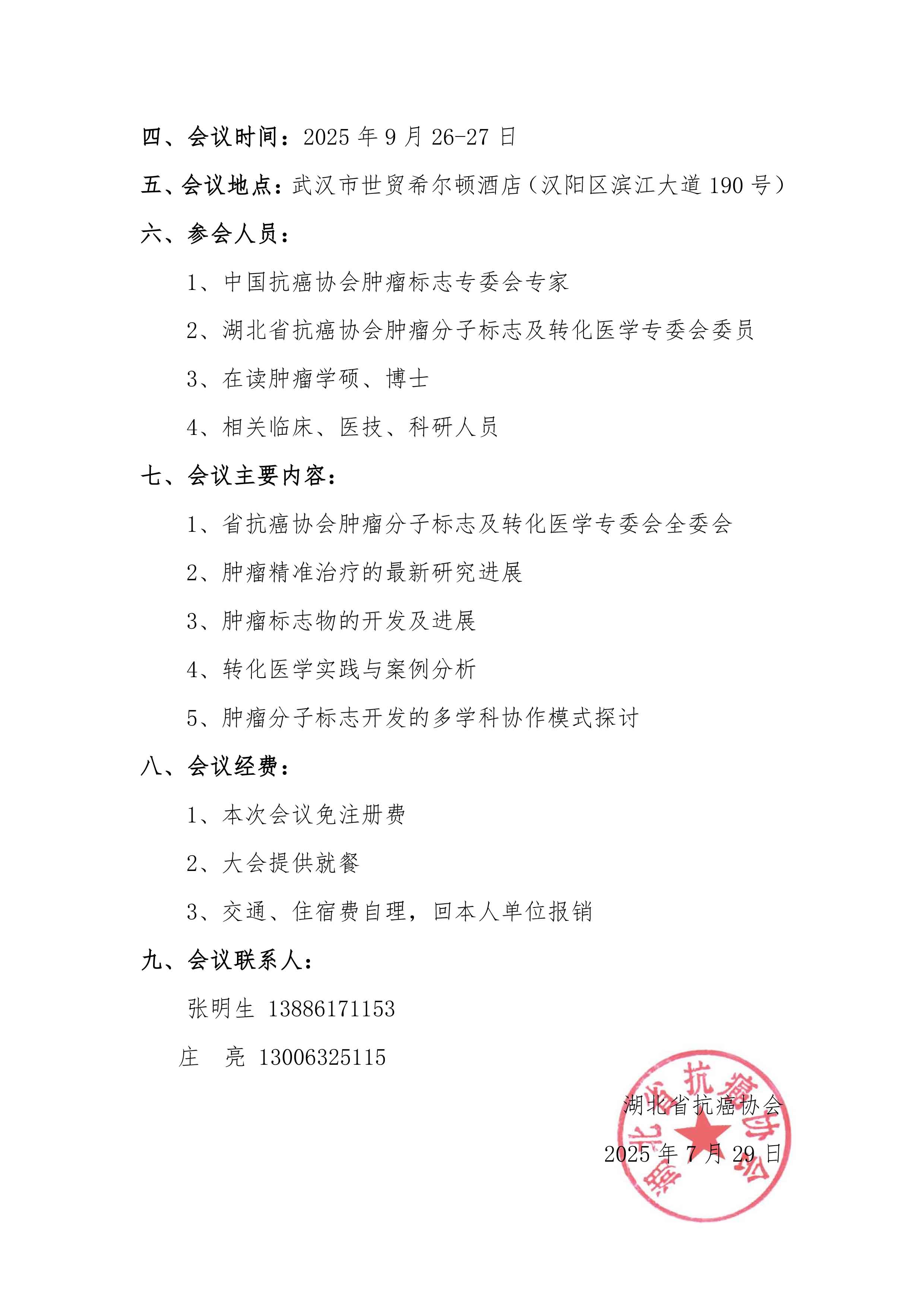 关于承办中国抗癌协会肿瘤标志专委会2025年肿瘤分子标志及转化医学学术研讨会的通知