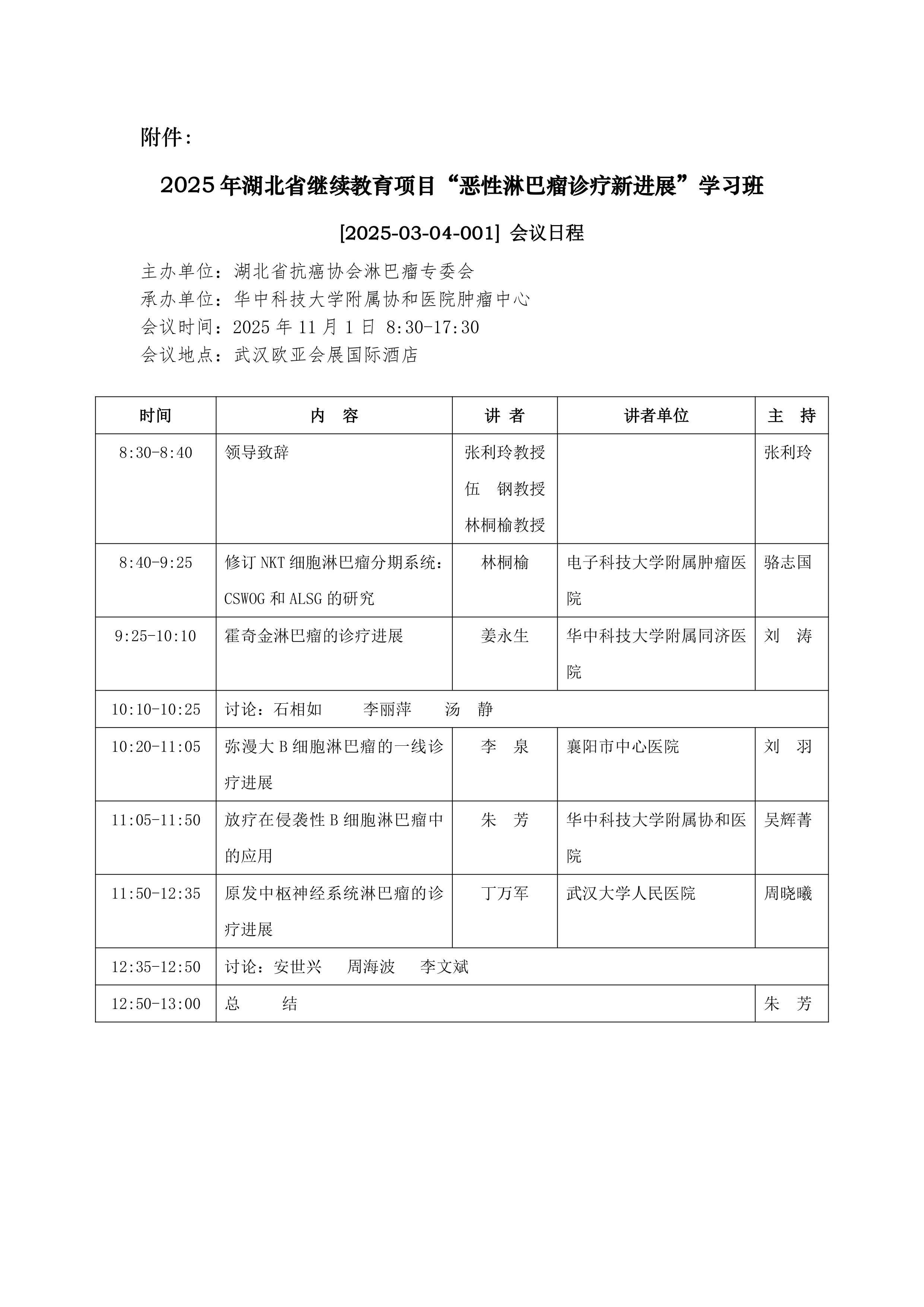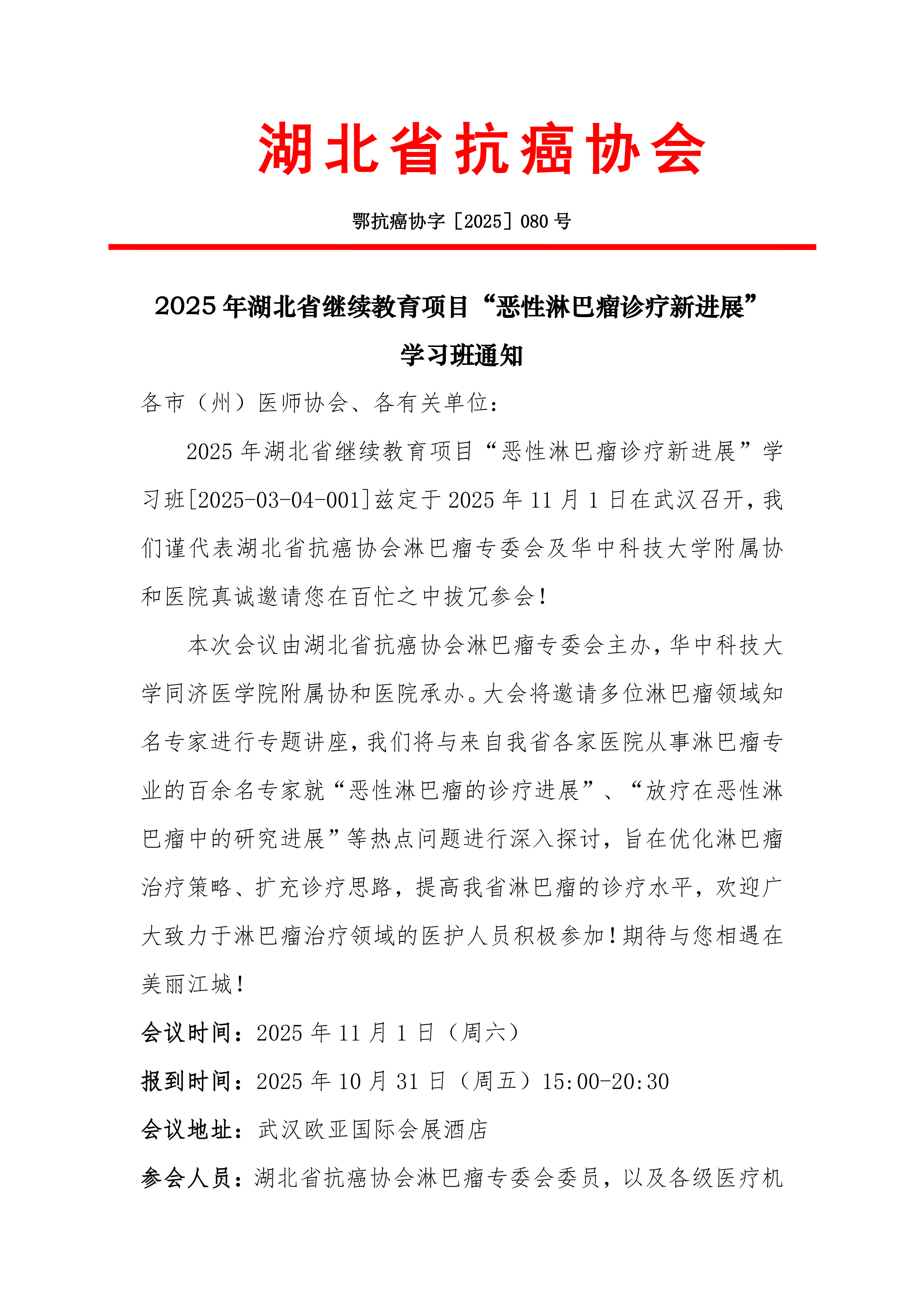 2025年湖北省继续教育项目“恶性淋巴瘤诊疗新进展”学习班通知