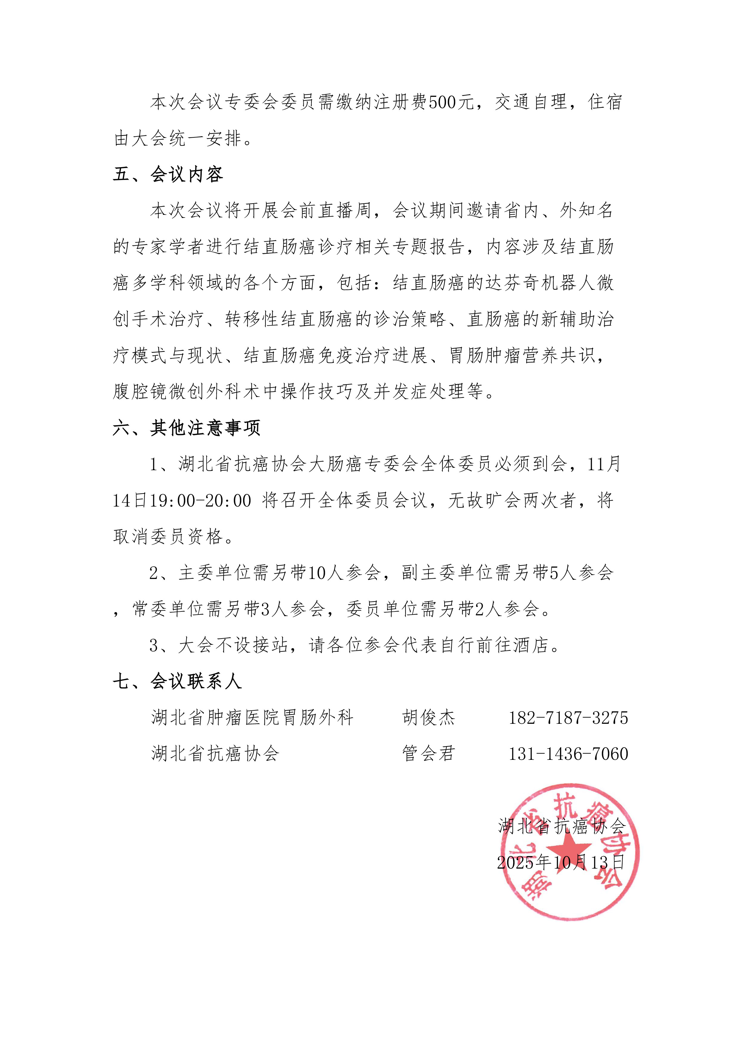 湖北省抗癌协会大肠癌专业委员会2025年学术会议通知