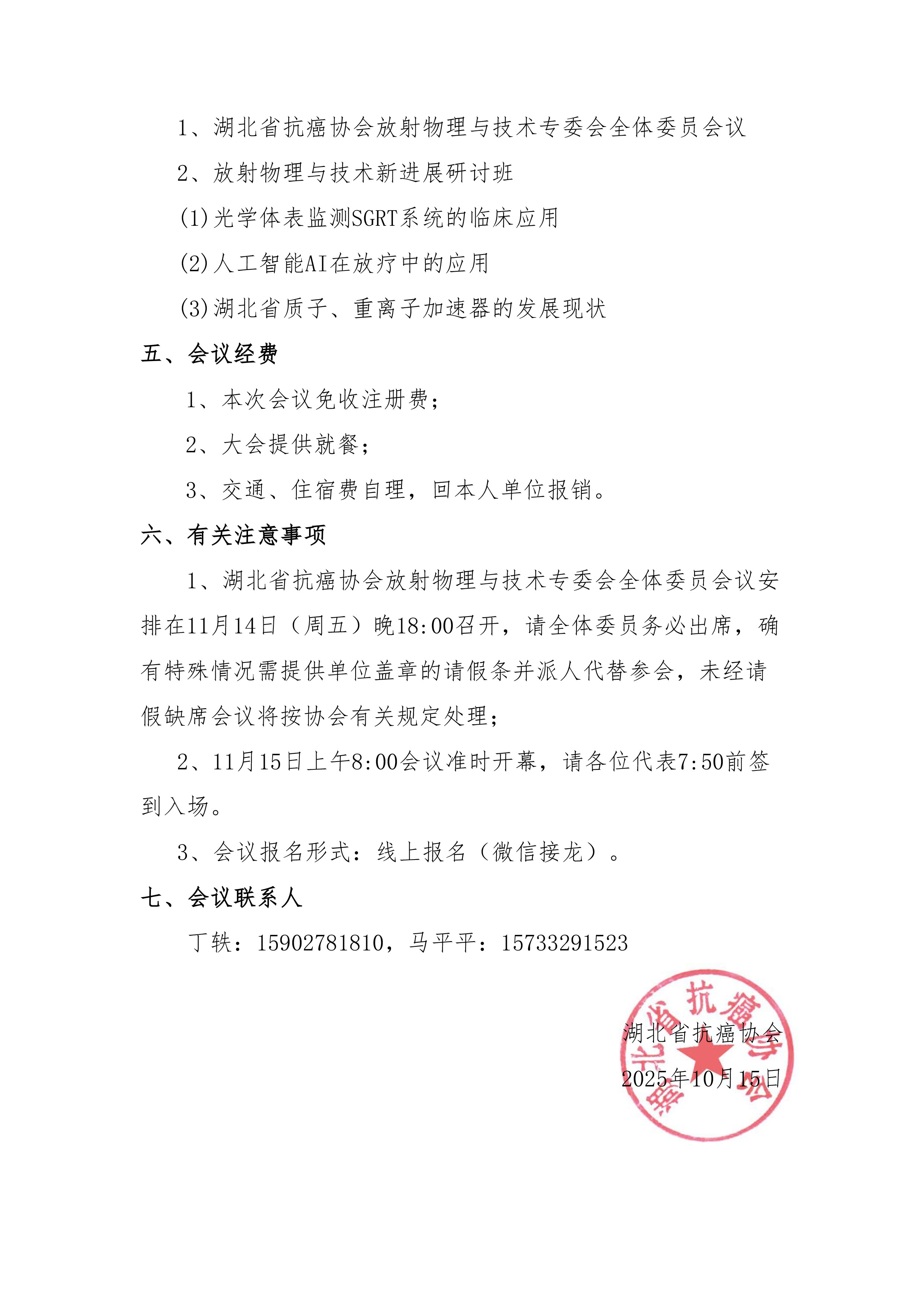 关于湖北省抗癌协会放射物理与技术专委会举办省级继教项目《放射物理与技术新进展研讨班》的通知