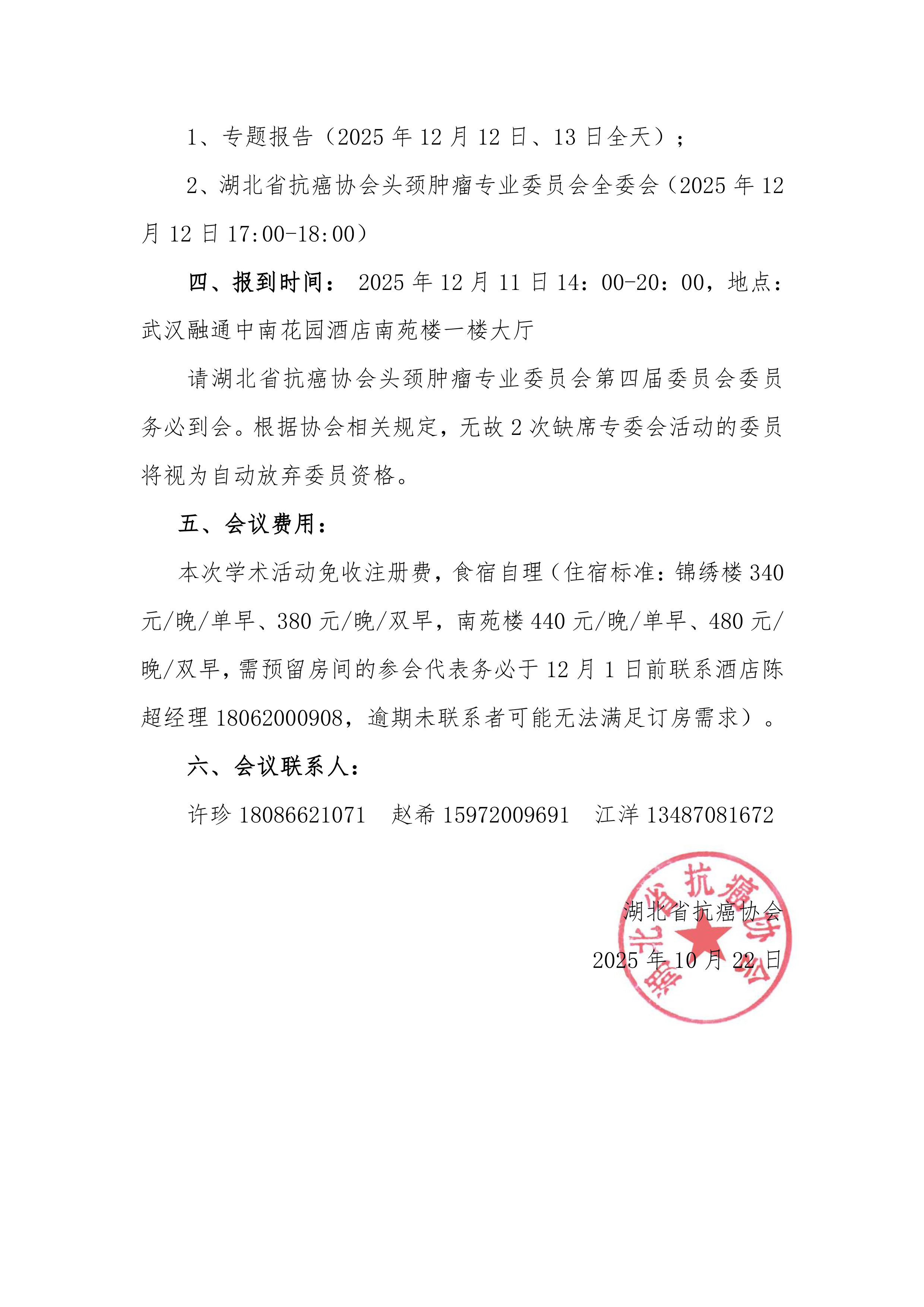 湖北省抗癌协会头颈肿瘤专业委员会2025年学术会议通知(第一轮)