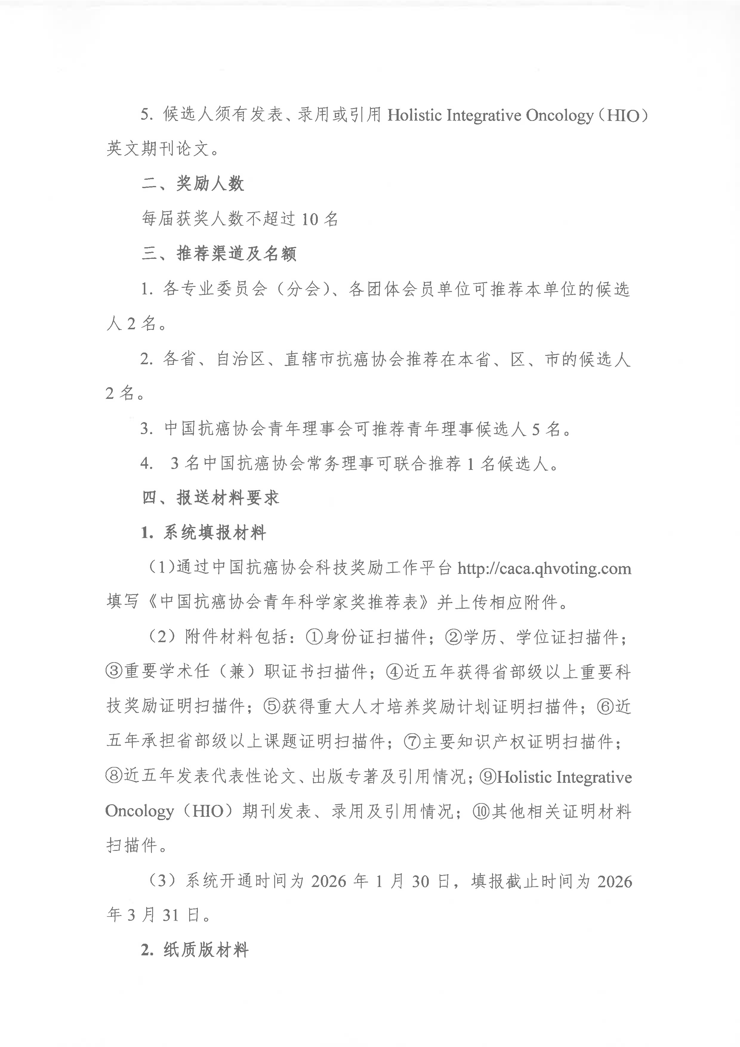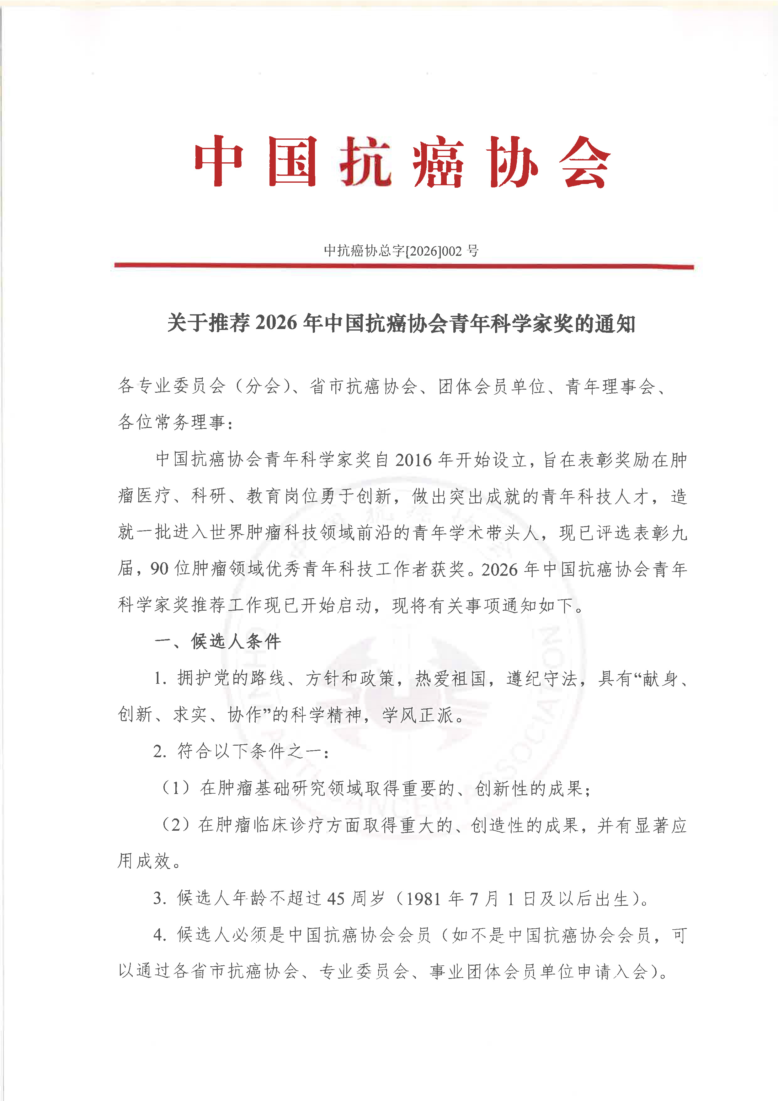 附件1:《2026年中国抗癌协会青年科学家奖推荐表》样表