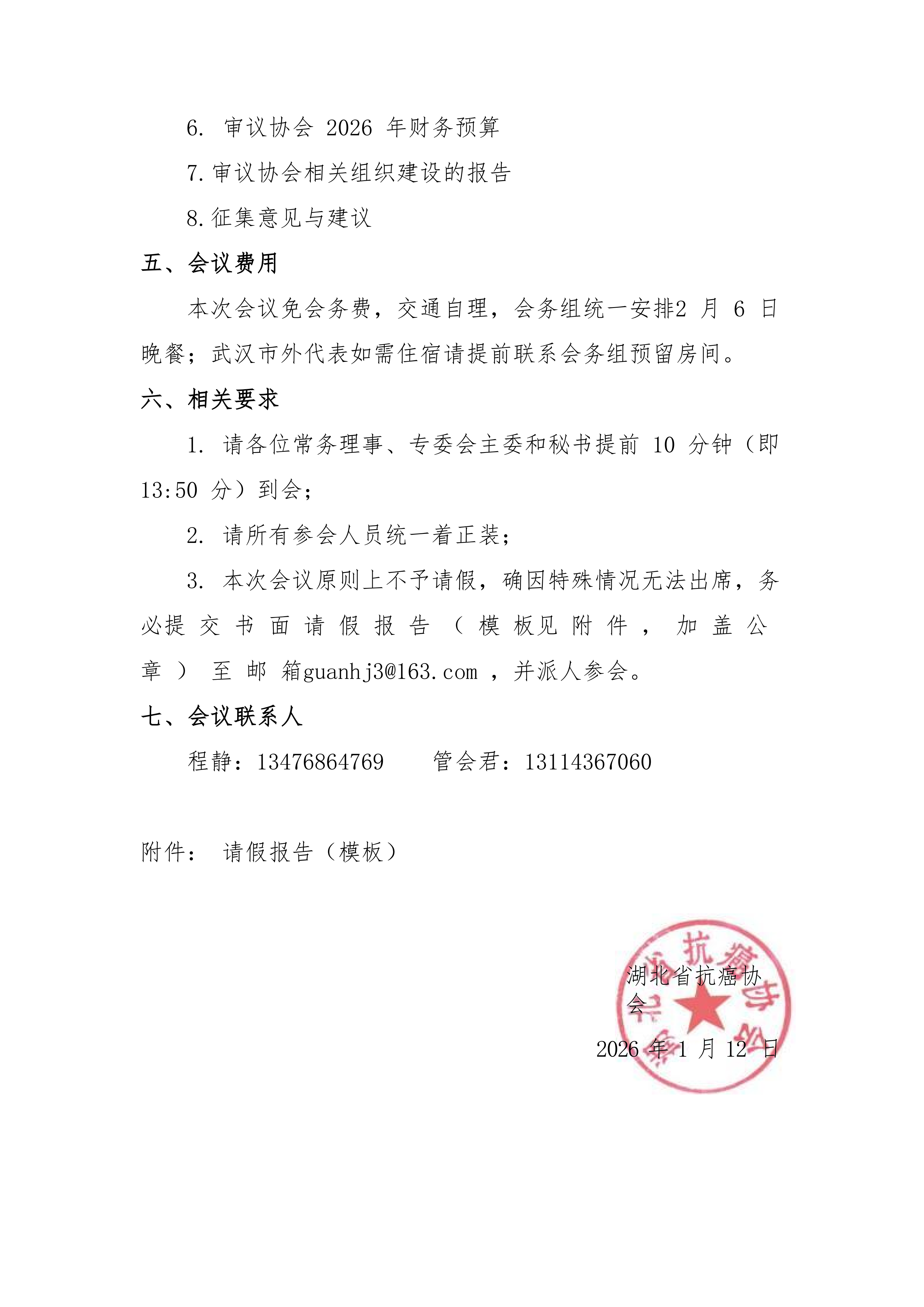 关于召开湖北省抗癌协会第八届理事会第七次常务理事扩大会议的通知