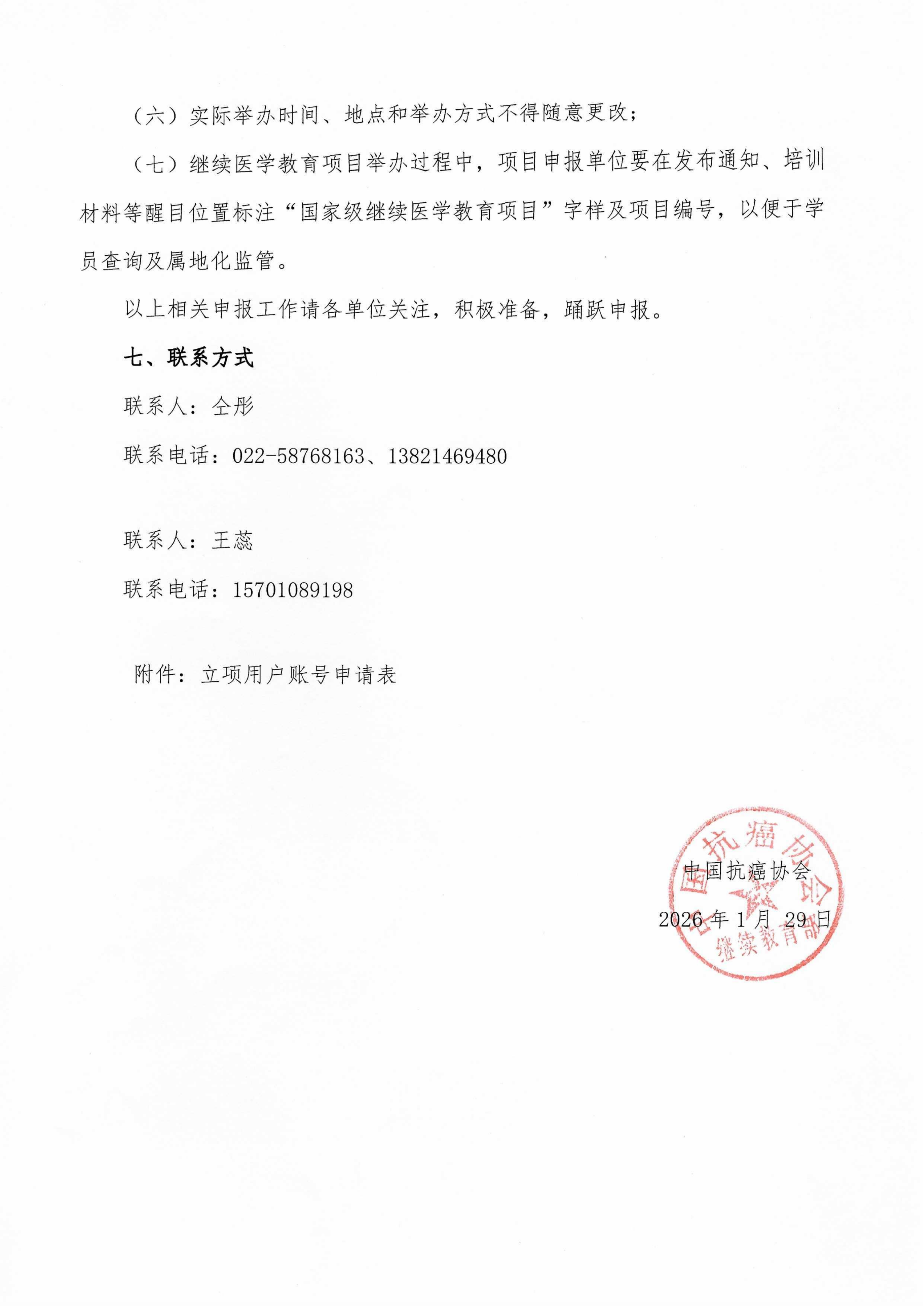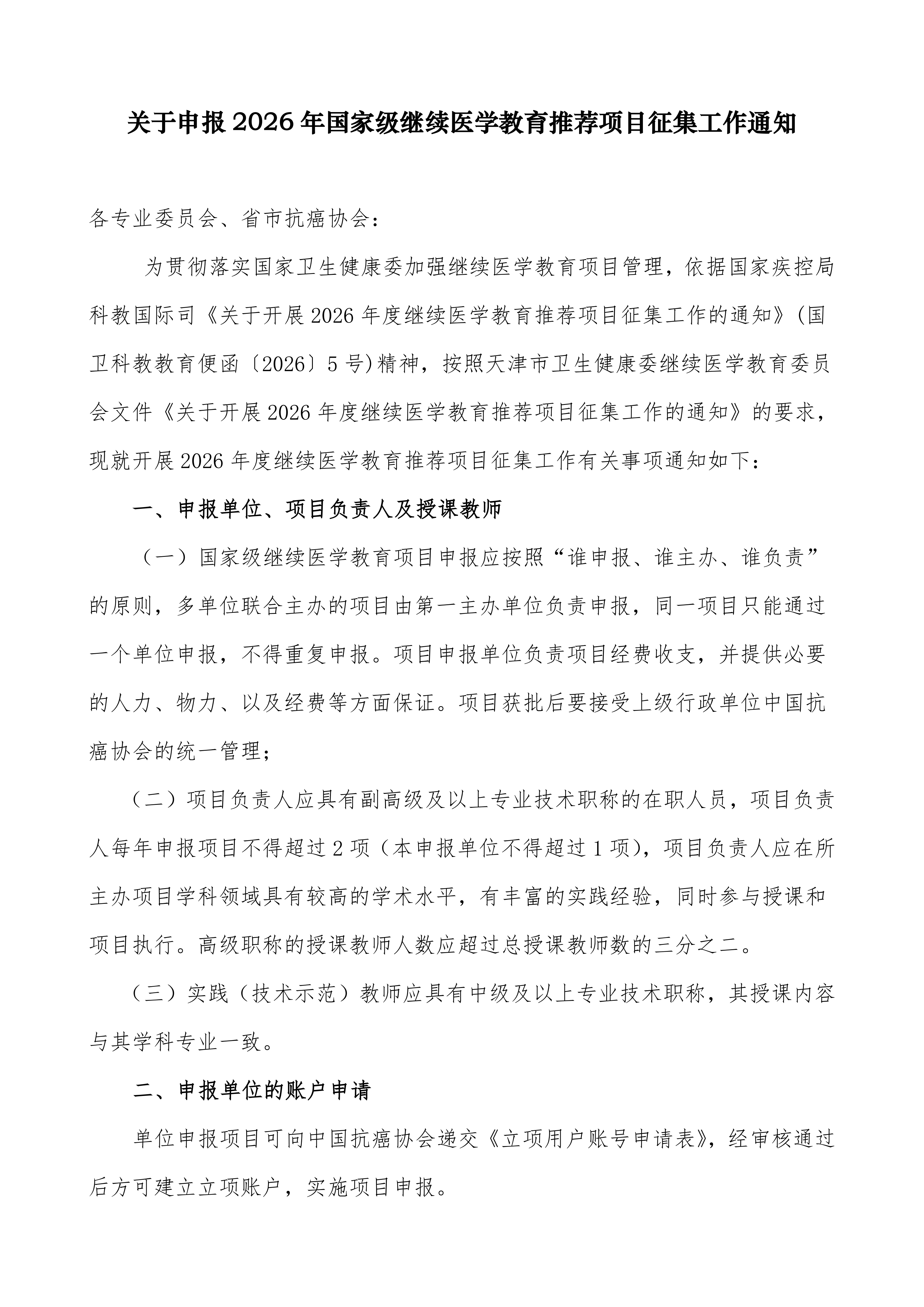 中国抗癌协会2026年国家级继续医学教育推荐项目征集工作现已开展,申报时间为:2026年1月29日—2月1日。如有意向通过湖北省抗癌协会申报项目,请联系秘书处领取网上申报账户。联系电话:027-87670019。
