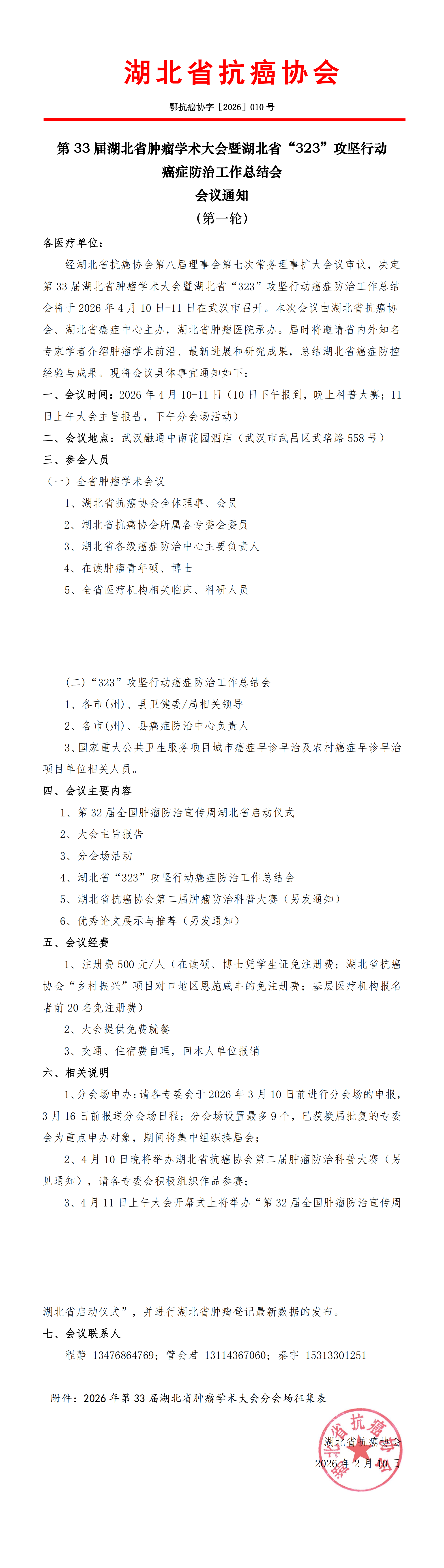 附件:2026年第33届湖北省肿瘤学术大会分会场征集表